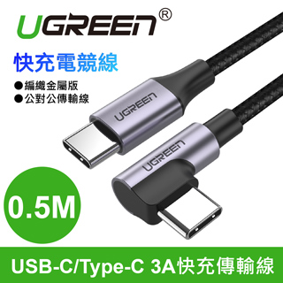 • 綠聯 60W快充線Type-C傳輸線 編織金屬版0.5M